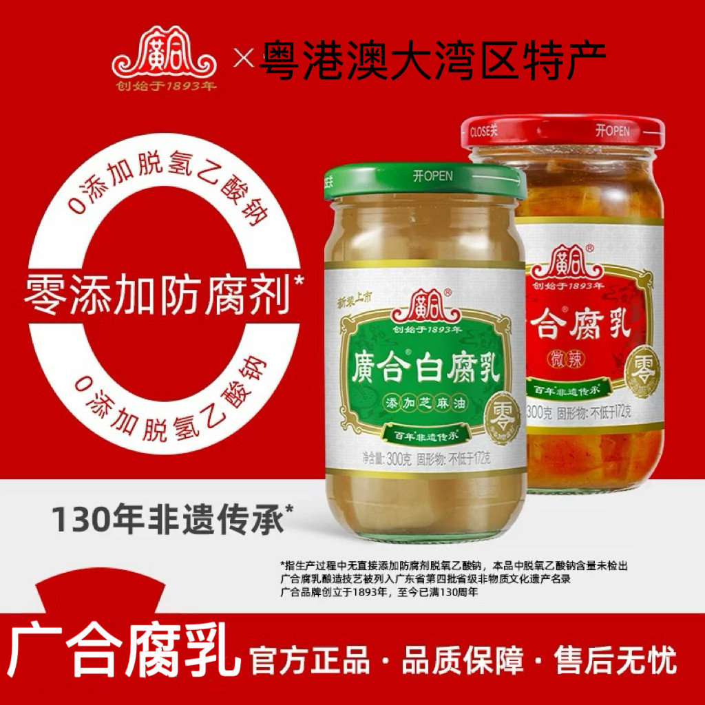 开平特产 广合腐乳 廣合微辣味豆腐乳老牌白腐乳糟方腐乳300g即食