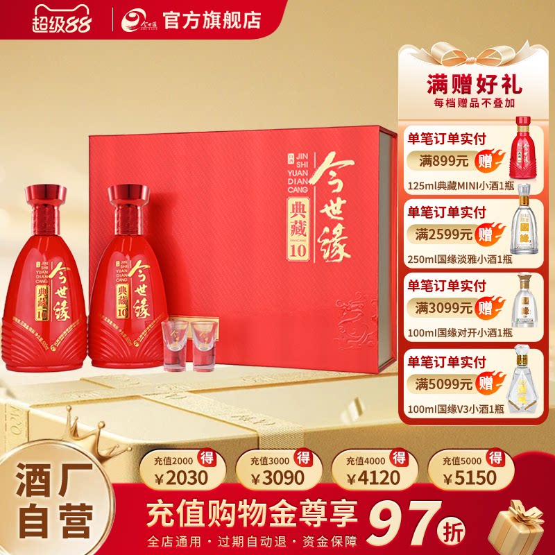 -> 【酒厂自营】今世缘42度浓香型白酒典藏10礼盒500ml*2送礼
