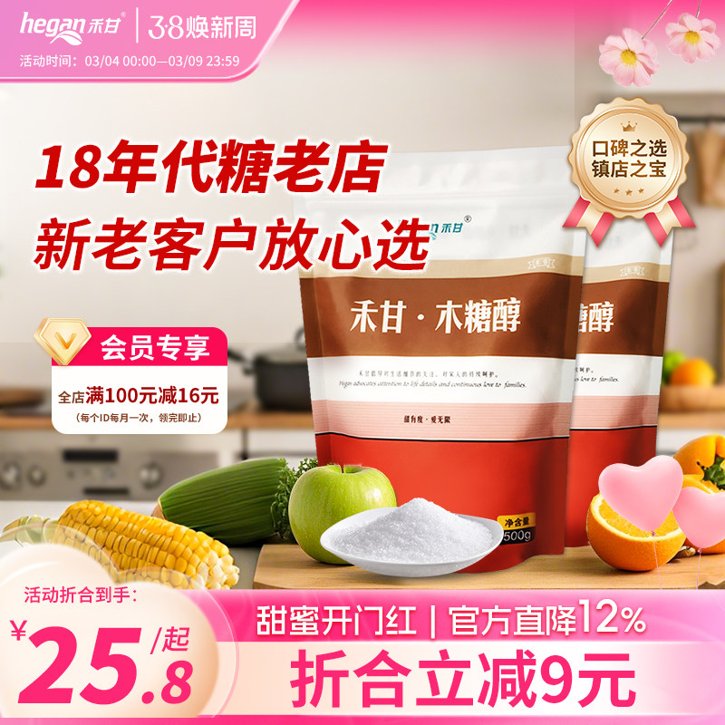 500g*2袋]禾甘木糖醇家用代糖共1000g代白砂糖轻食甜味剂不升血糖