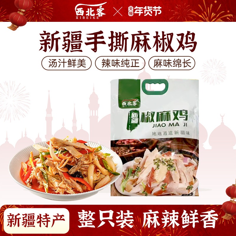 西北客椒麻鸡手撕麻椒鸡新疆特产正宗烧鸡整只700克鸡肉熟食真空