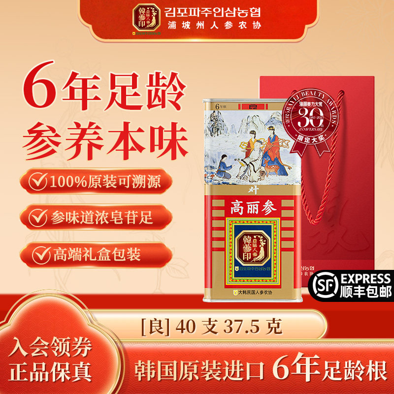 【送礼推荐】韩参印韩国进口高丽参良参40支开城人参礼盒红参礼物