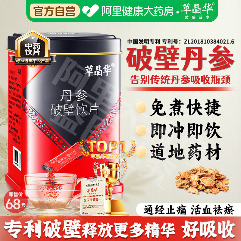 -> 草晶华破壁丹参饮片颗粒粉旗舰店中药饮片中药材冻干粉官方正品