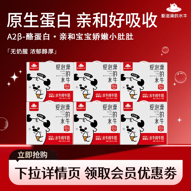 -> 爱泡澡的水牛200ml*10盒*6箱儿童孕妇早餐奶A2酪蛋白广西水牛奶