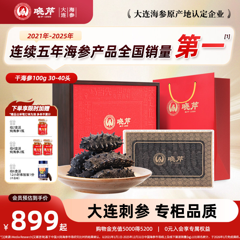 -> 【节日礼盒】晓芹干海参礼盒深海海参干货100克辽刺参大连海刺参