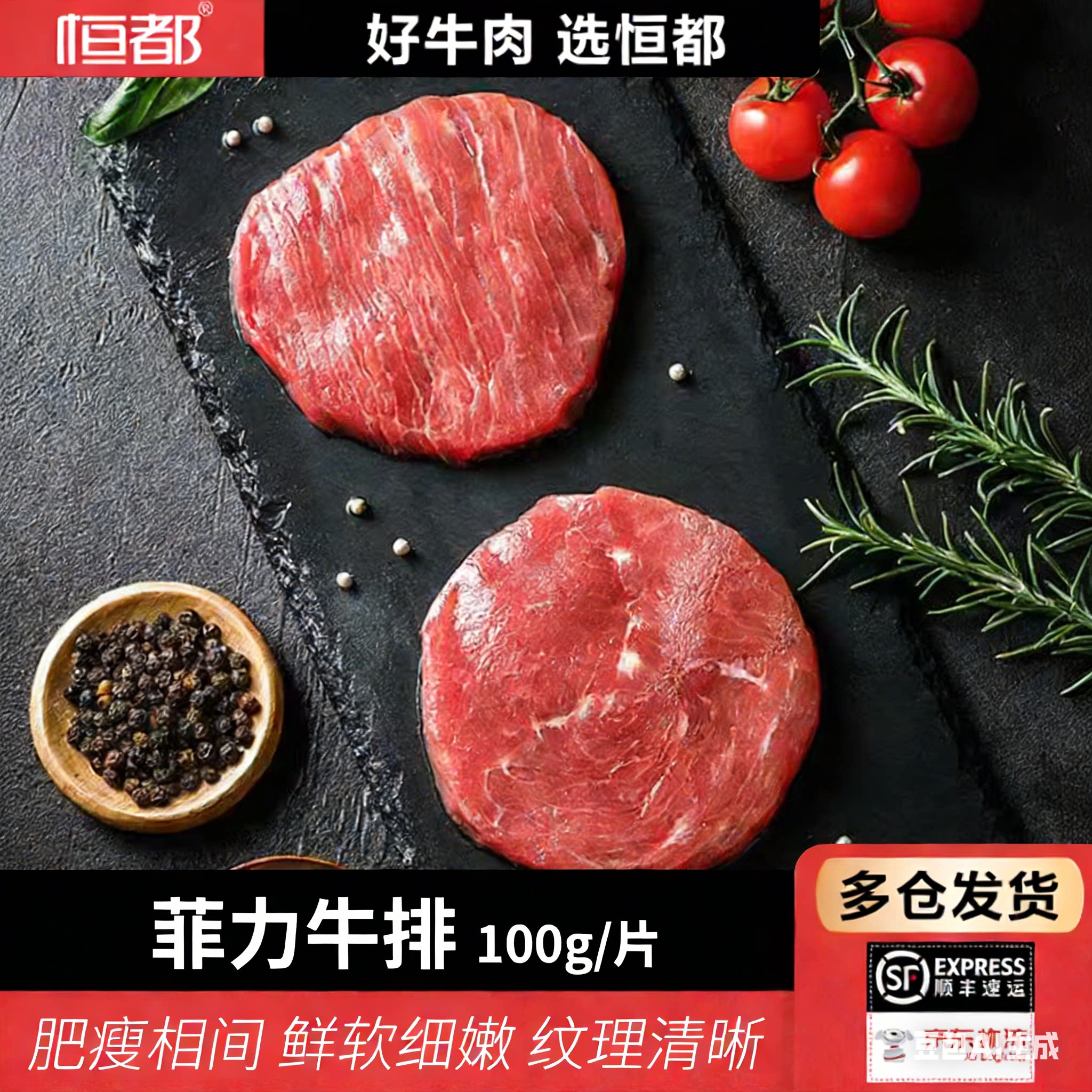 -> 恒都菲力牛排100g谷饲牛排5片10片可选 含赠黑椒酱料包