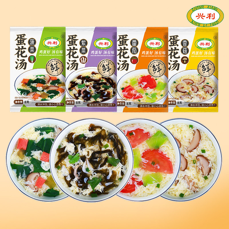 -> 兴利蛋花汤速食汤速食紫菜汤番茄香菇菠菜芙蓉鲜蔬汤即食早餐食品