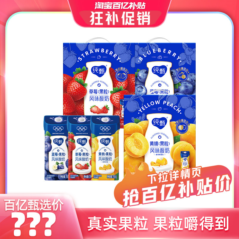 -> 【百亿臻选】纯甄草莓/黄桃/蓝莓风味酸奶200g×10包