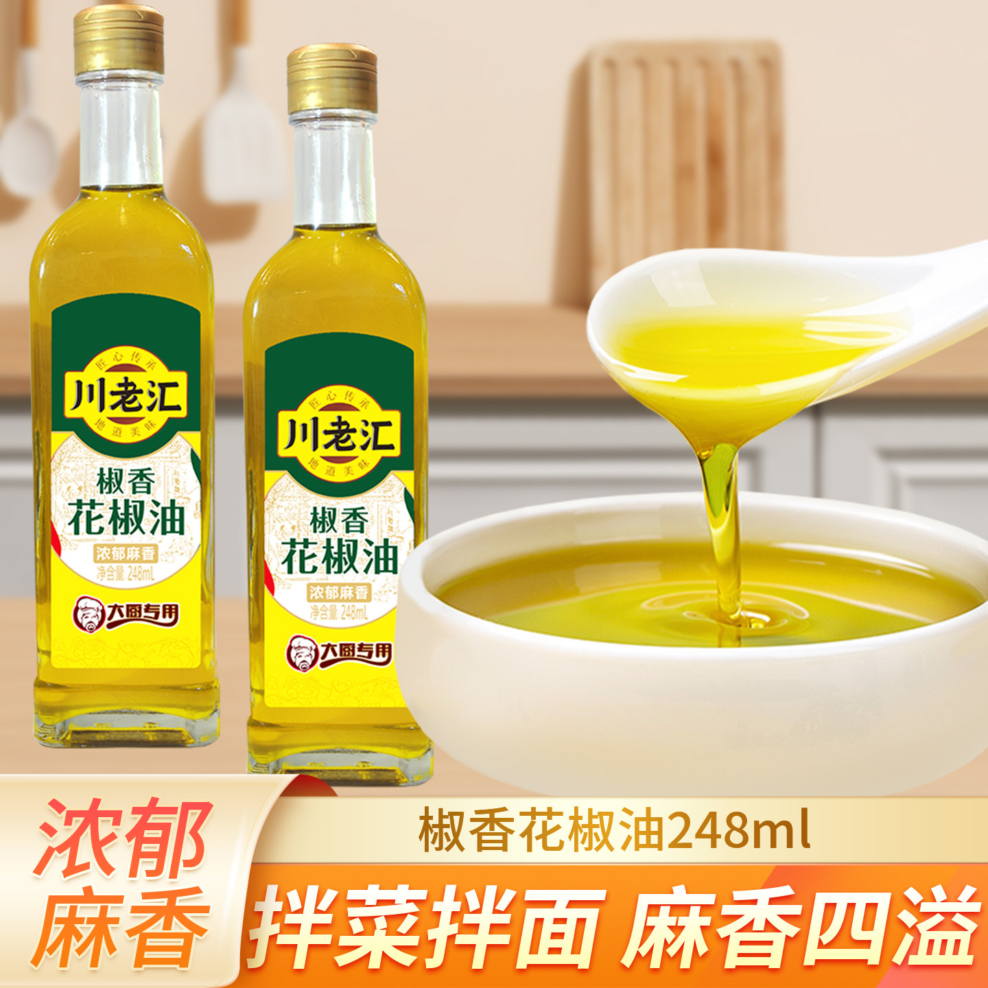 -> 川老汇四川汉源花椒油248ml 特麻特香家用花椒麻油川菜拌菜调料油