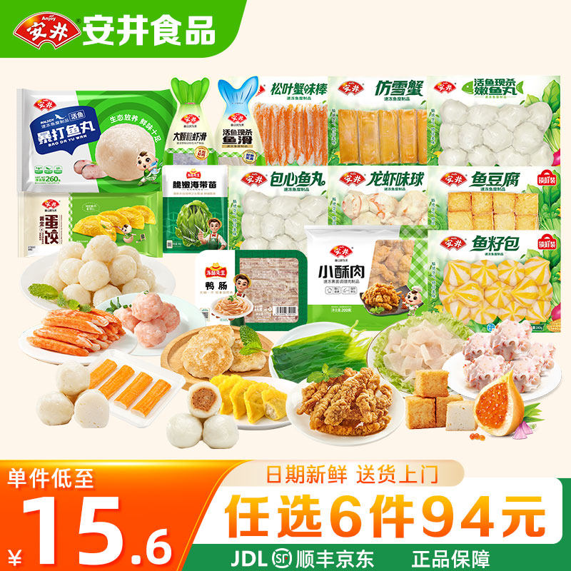 安井【94任选6件】火锅丸子锁鲜装虾滑潮汕牛肉丸鱼豆腐鱼籽蟹棒