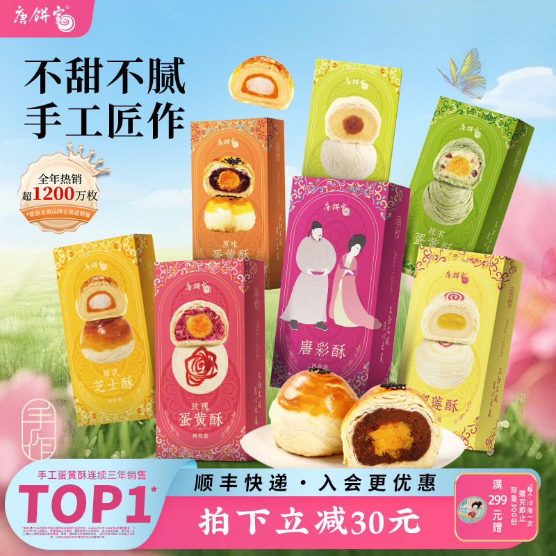 -> 唐饼家芝士抹茶绿豆榴莲手工蛋黄酥网红零食糕点点心小吃伴手礼