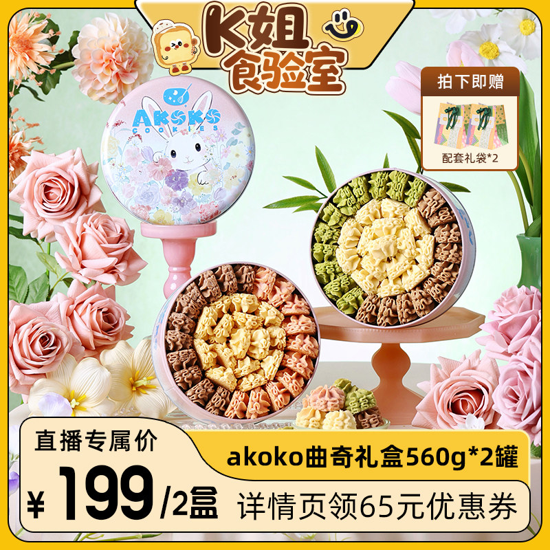-> 【k姐专属】AKOKO小花黄油曲奇饼干560g女生送礼物甜品