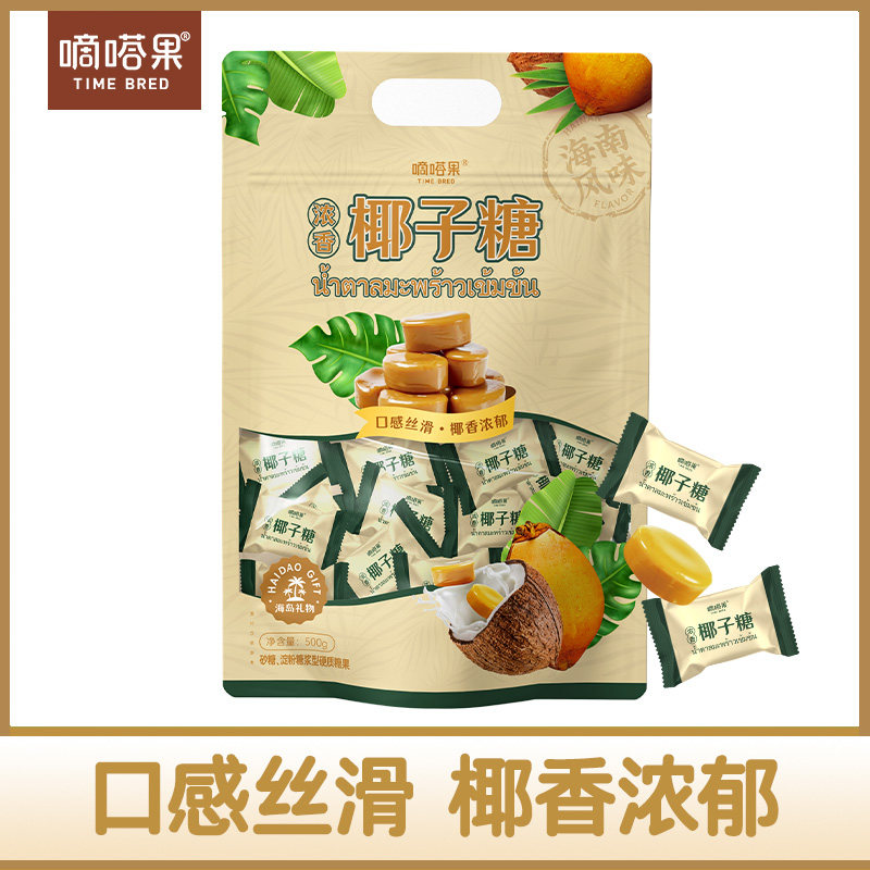 -> 嘀嗒果浓香椰子糖海南特产婚庆喜糖年货休闲零食椰汁硬糖袋装500g