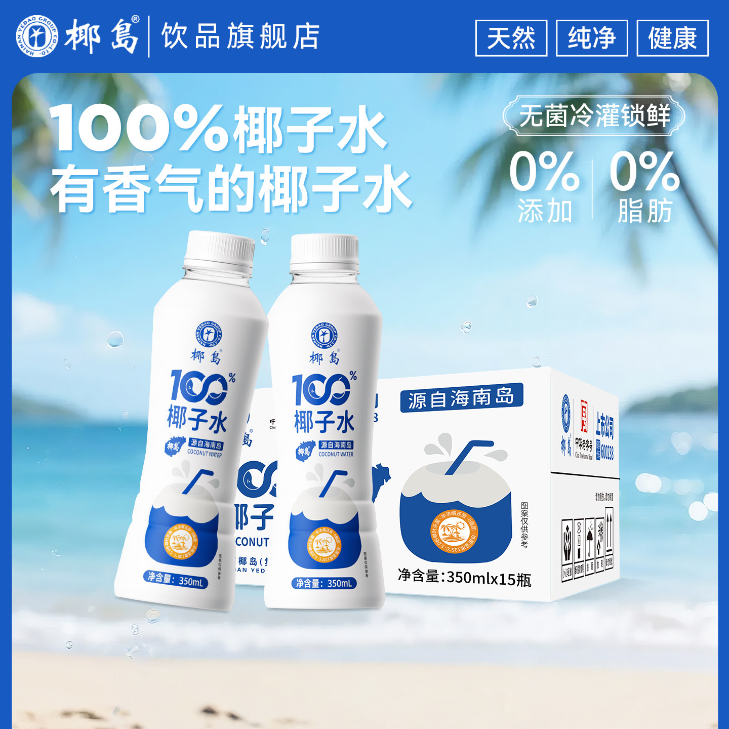 椰岛百分百纯椰子水350ml*15瓶NFC0脂天然电解质饮料补水孕妇专用