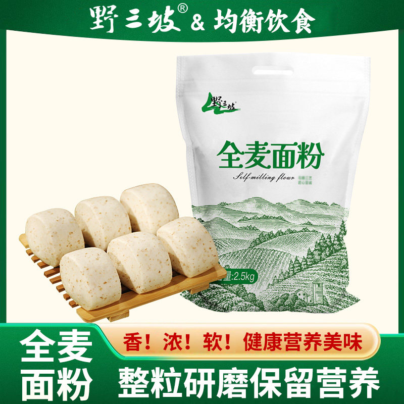 -> 5斤纯全麦面粉 农家现磨全麦粉含麸皮整粒研磨家用馒头面包粉