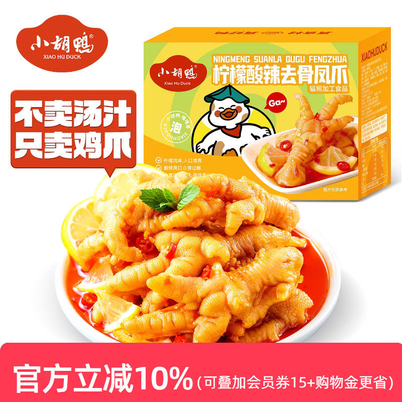 -> 小胡鸭柠檬酸辣味无骨鸡爪330g去骨凤爪鸭掌脱骨宵夜独立包装