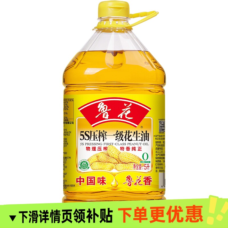 鲁花5S压榨一级花生油5L*1桶特香纯正煎炒炸凉拌食用油