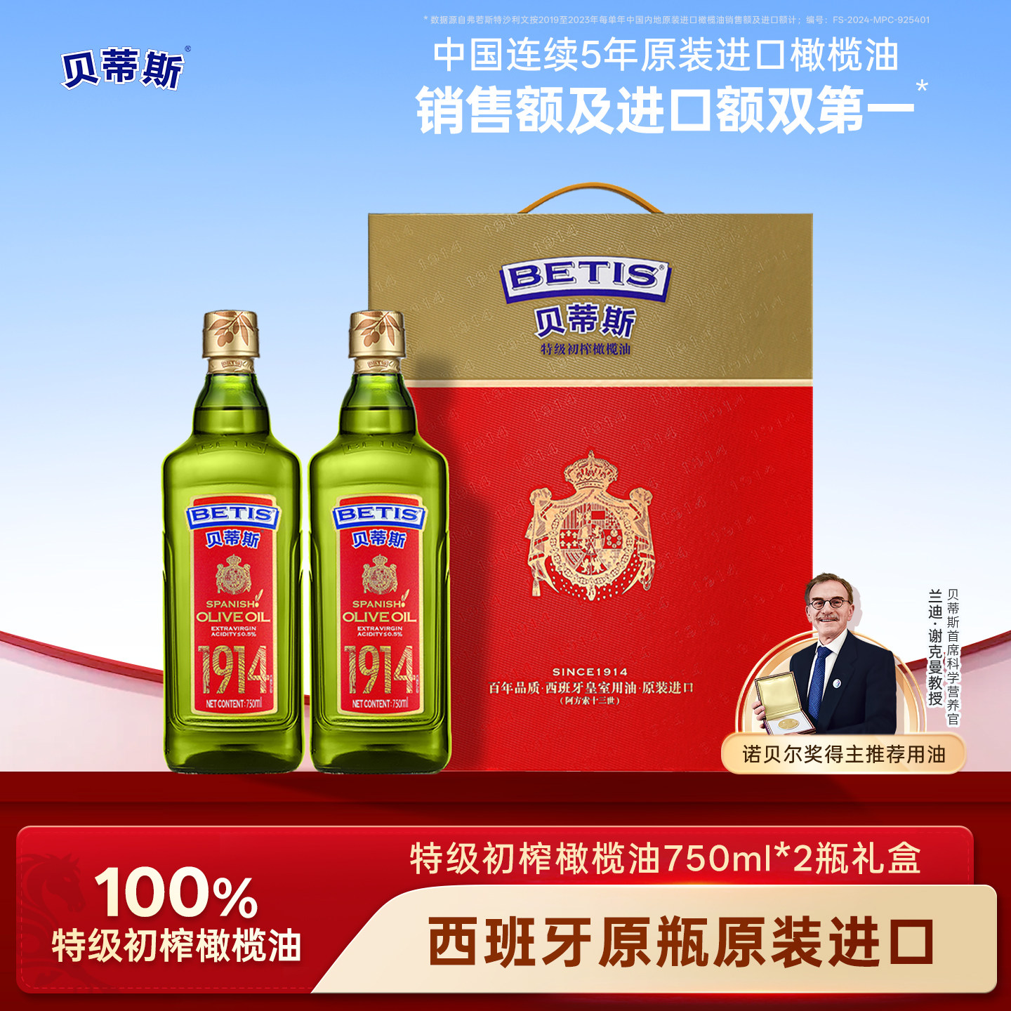 贝蒂斯特级初榨橄榄油750ml*2礼盒西班牙原装进口健康食用油送礼