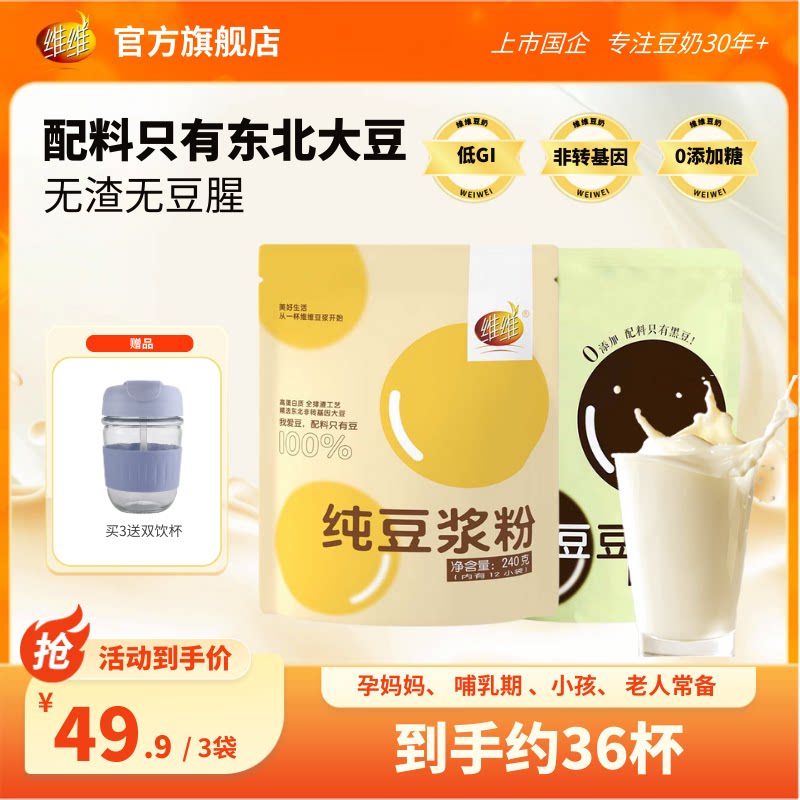 -> 【0糖添加】维维黑豆纯豆浆粉原味高蛋白液断即食代健身早餐孕妇