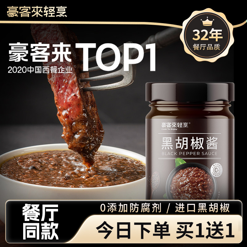 -> 豪客来牛排专用黑胡椒酱腌制调味料意大利面酱旗舰店0添加防腐剂