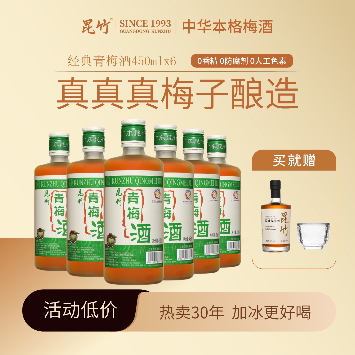 -> 昆竹青梅酒自然发酵梅子酒 中华本格梅酒 30年老酒厂 1箱实惠组合