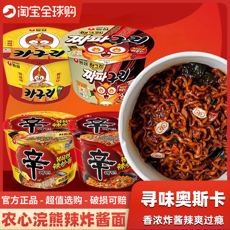 -> 韩国进口农心小浣熊炸酱面韩式咖喱乌冬辣拉面速食拌面泡面方便面