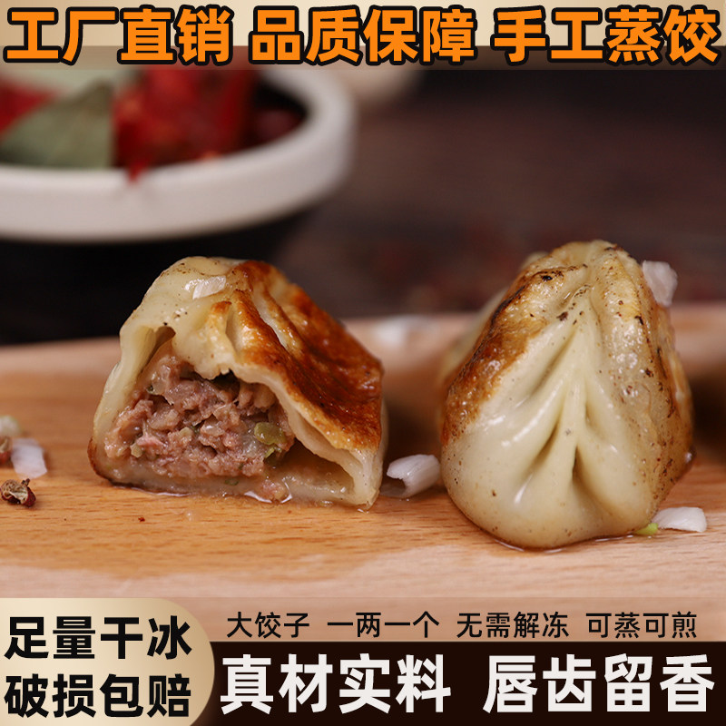-> 【3袋】手工蒸饺许老八大个驴肉三鲜虾仁商用批发冷冻2斤煎饺锅贴
