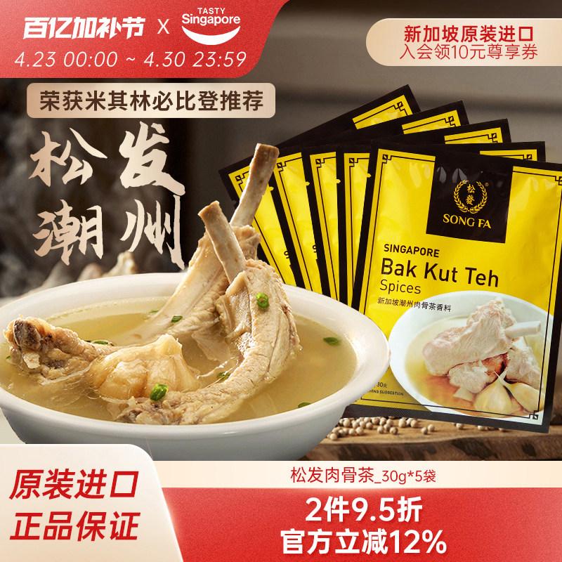 松發新加坡进口潮州肉骨茶汤料包煲汤香料胡椒味调料餐厅同款袋装