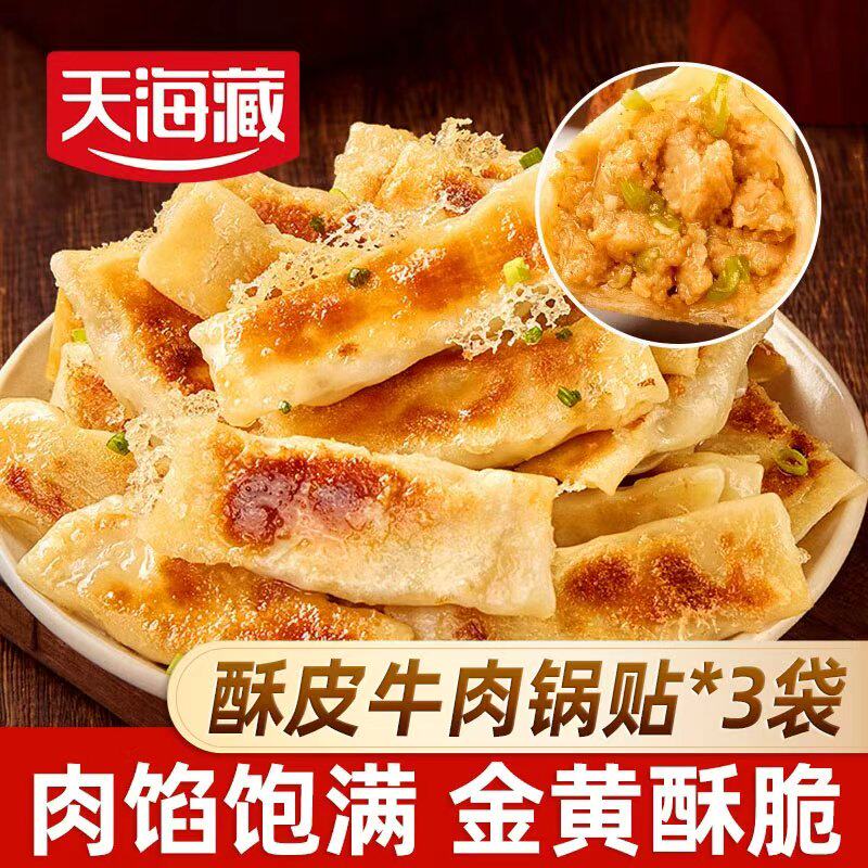 -> 【30/50个】天海藏酥皮牛肉锅贴250g/袋 早餐速食半成品蒸饺煎饺