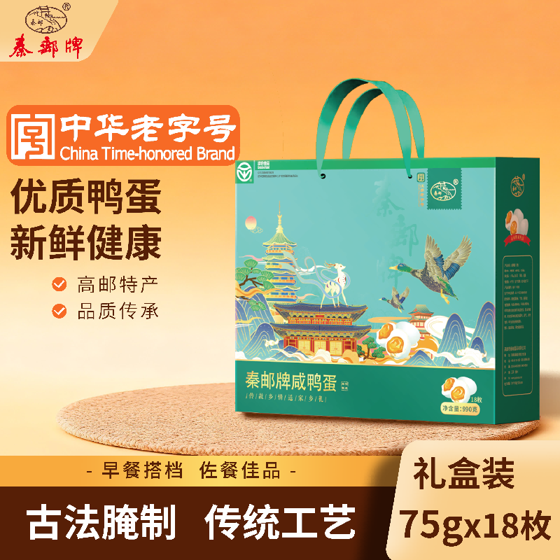 秦邮牌75gX18枚礼盒高邮咸鸭蛋开袋即食团购送礼