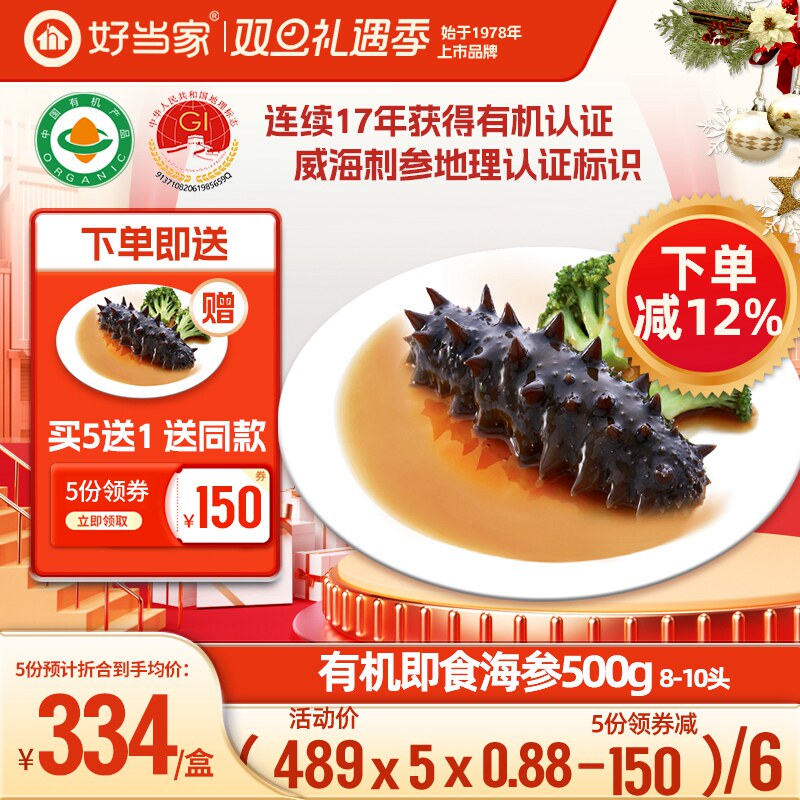 好当家即食海参500g 10-15头深海底播有机威海海鲜旗舰店非干参