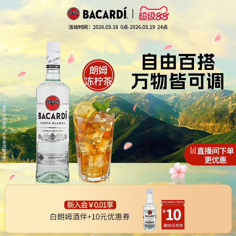 【官方正品】 Bacardi百加得白朗姆750ml洋酒莫吉托调酒基酒