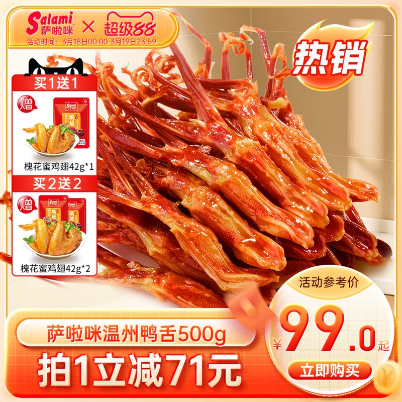萨啦咪官方酱香卤鸭舌温州特色零食小吃休闲食品萨拉米萨拉咪500g