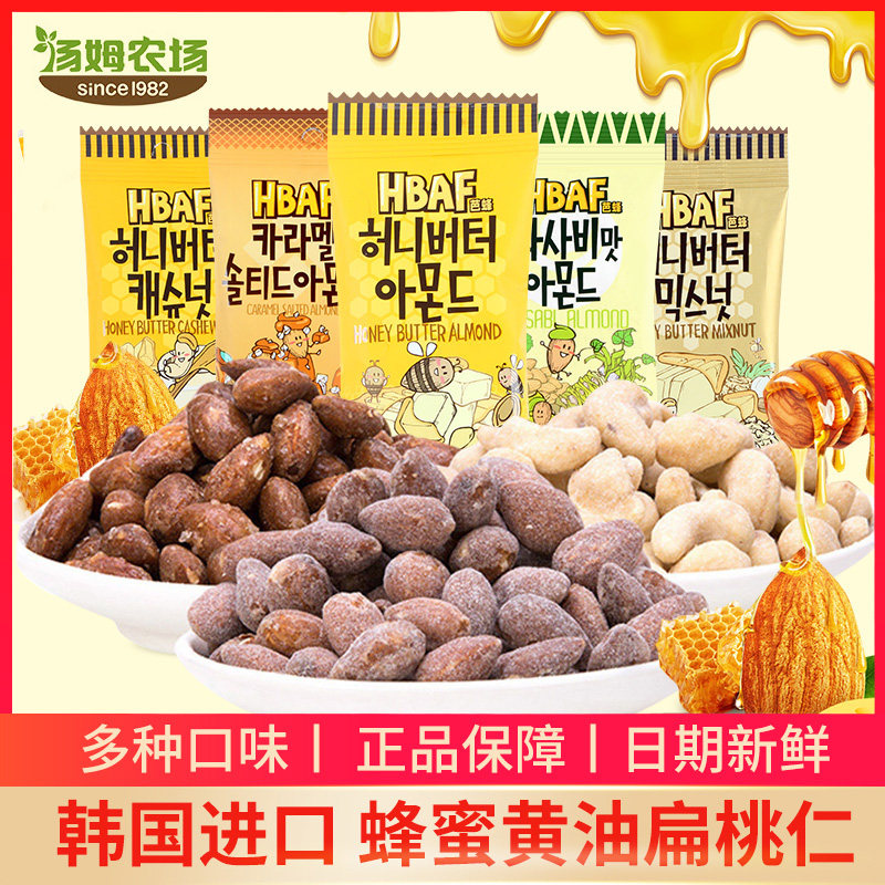 -> 韩国进口汤姆农场蜂蜜黄油扁桃仁腰果混合杏仁味坚果休闲零食批发