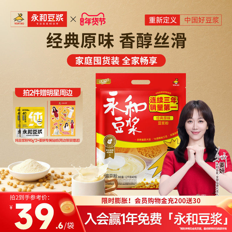 【姜妍推荐】永和豆浆无添加蔗糖豆浆粉1200营养早餐速溶官方旗舰