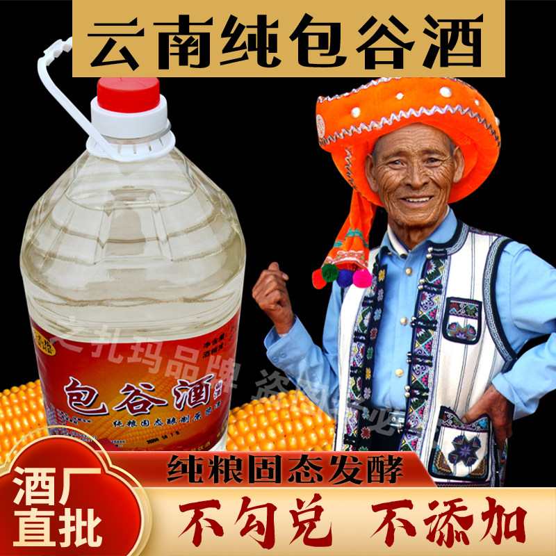 -> 云南自烤酒纯粮食固态酿造包谷酒玉米烧酒桶装清香型高度泡药白酒