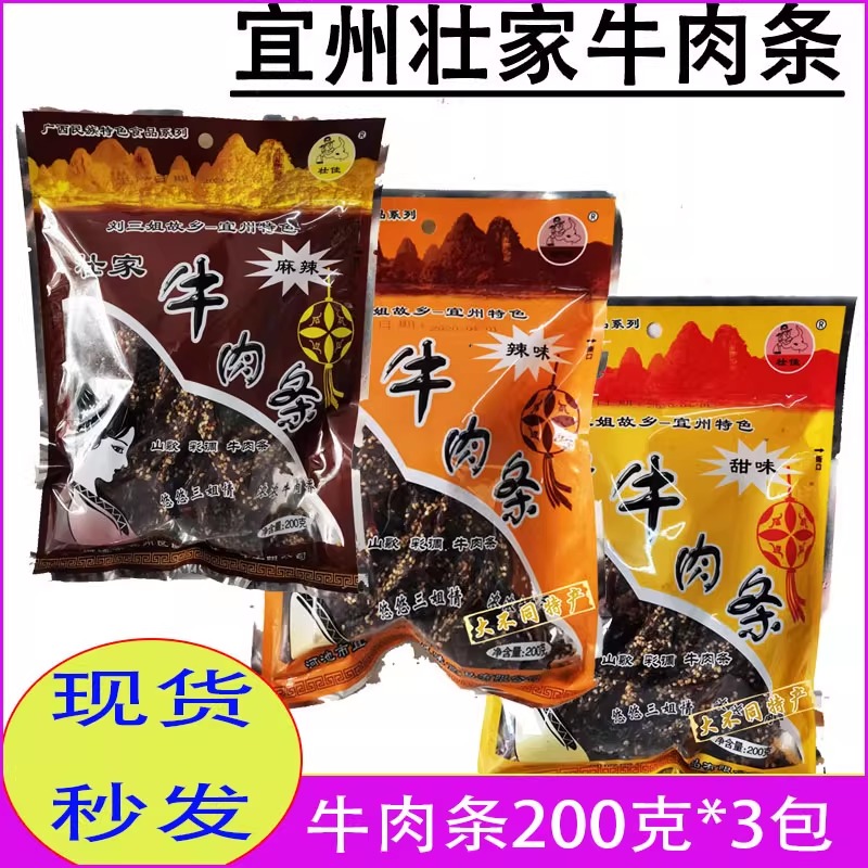 广西特产宜州牛肉条壮家200g*3袋装刘三姐牛肉干小零食肉食类包邮