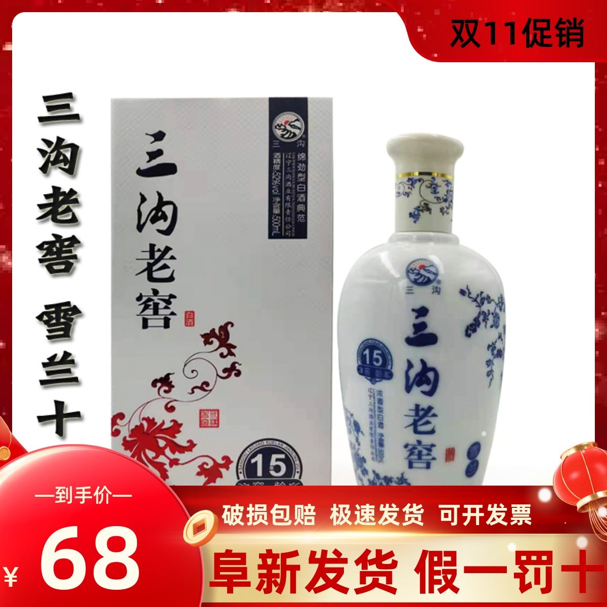 全球 -> 辽宁 -> 阜新 -> 三沟老窖 三沟雪兰窖龄15年52度浓香型500ml礼盒装纯粮固态法白酒