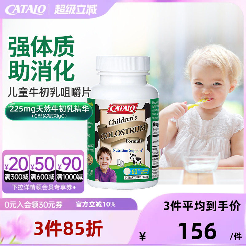CATALO家得路进口儿童牛初乳免疫球蛋白咀嚼片钙片官方旗舰店60粒