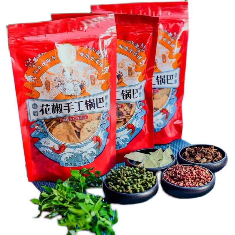 ¥13.4韩城龙门秦晋里花椒手工锅巴零食袋装230g麻辣五香味包邮大米吃货 韩城特产龙门秦晋里手工锅巴袋装