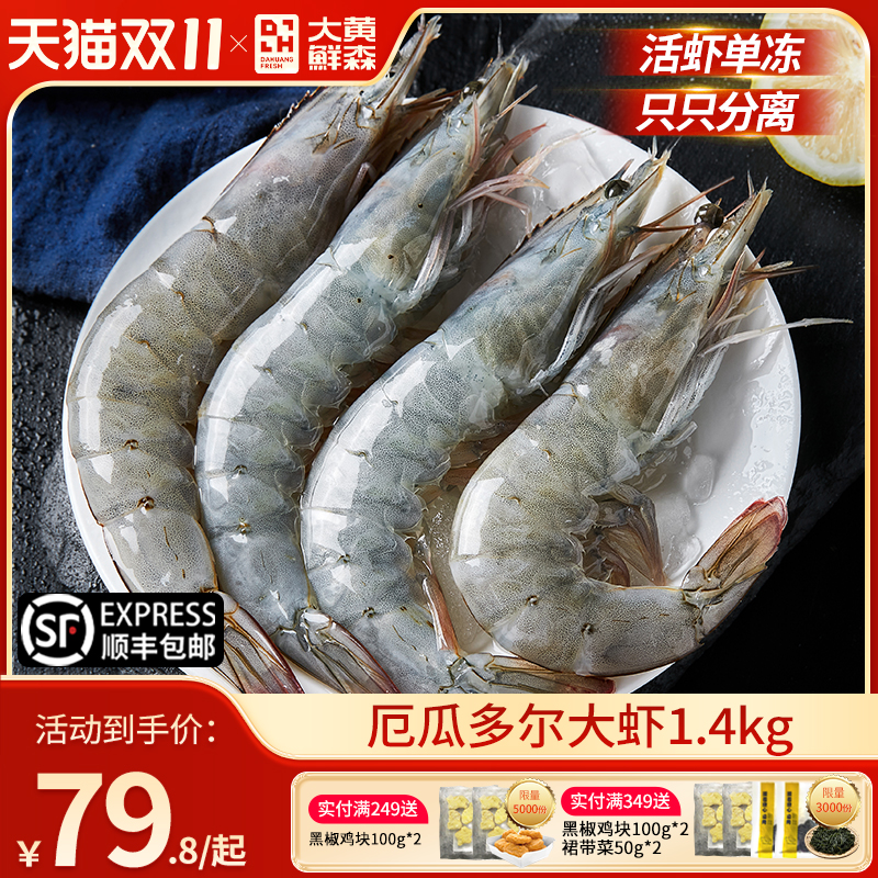 大虾鲜活速冻水产海鲜冷冻基围甜虾超大海虾对虾厄瓜多尔白虾特大