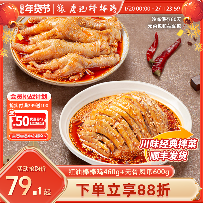 廖记棒棒鸡拌菜组合920g红油棒棒鸡无骨凤爪四川特产招牌拌菜美食