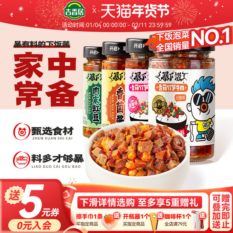 吉香居暴下饭200g香菇竹笋牛肉酱川香甜辣肉末豇豆鸡米芽菜下饭酱
