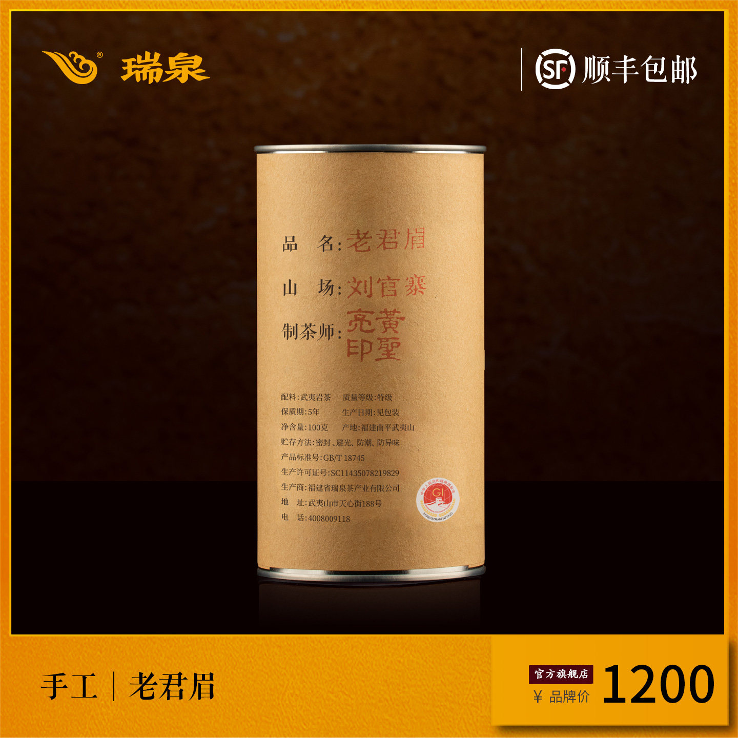 【官方正品】瑞泉茶叶旗舰店手工黄圣亮作老君眉武夷岩茶 100g