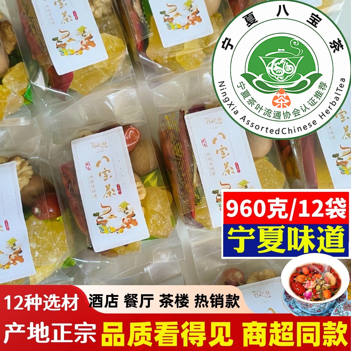 宁夏吴忠八宝茶永享八宝盖碗茶宁夏特产玫瑰酱盖碗茶900克三炮台