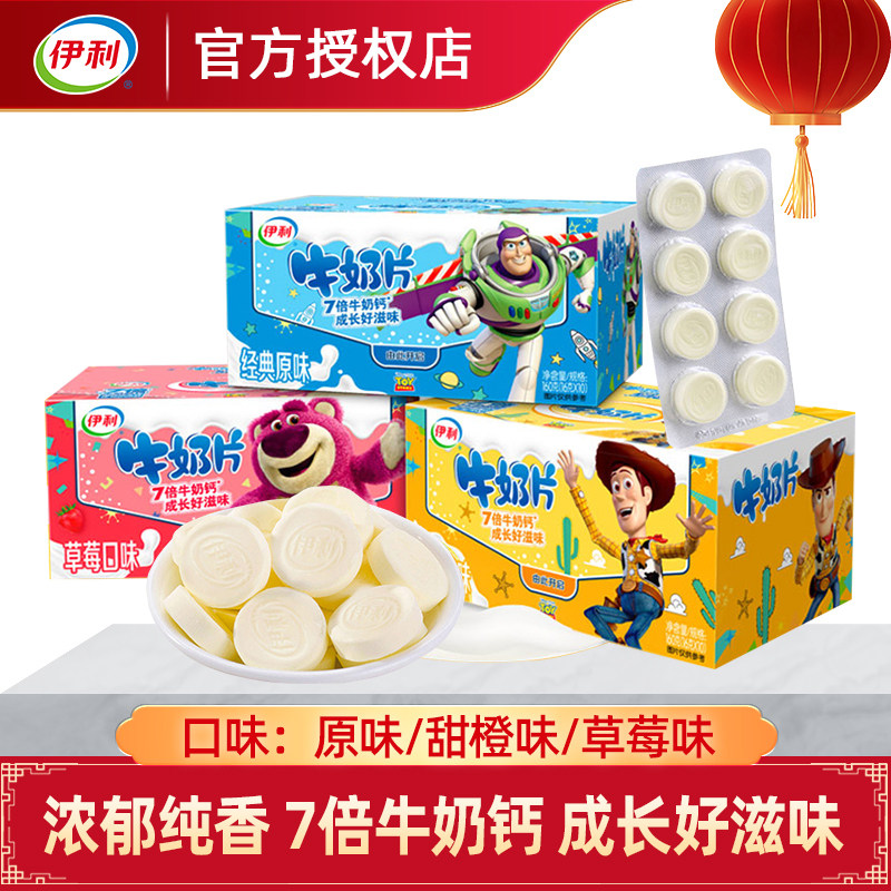 伊利牛奶片160粒原味草莓/甜橙味干吃内蒙古奶贝奶酪乳制品零食品
