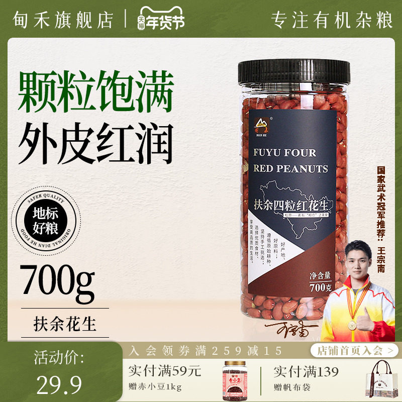 吉林扶余四粒红花生原味炒熟花生带壳花红皮生米天然不含黄曲霉素