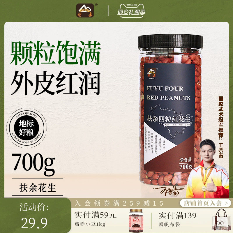 瑞利来甸禾扶余四粒红花生米生小粒花生仁农家自产新鲜去壳700g