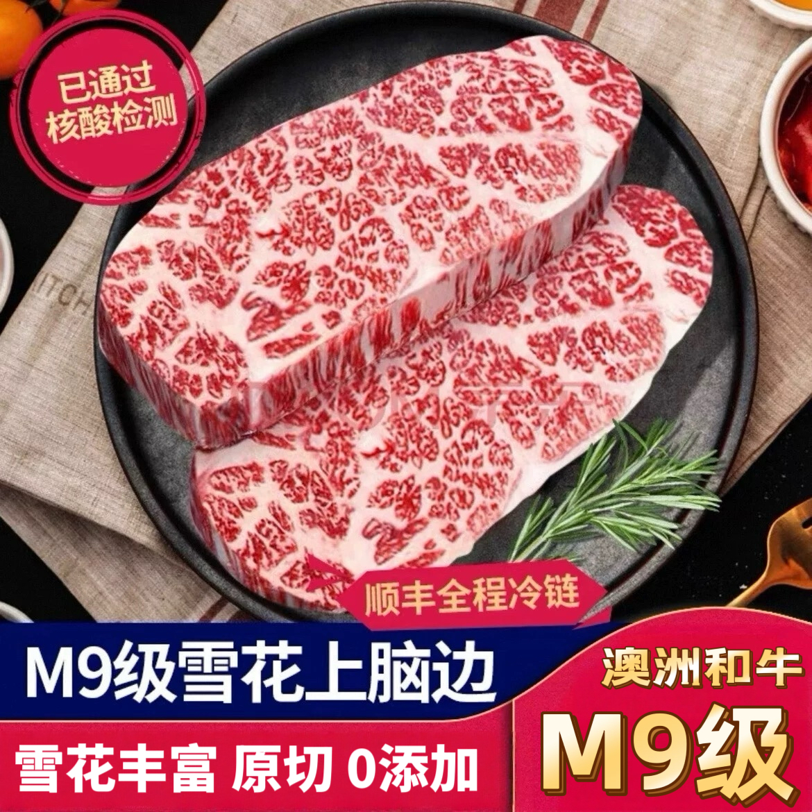 澳洲进口和牛m9上脑边牛排雪花谷饲牛扒原切高级食材非A5神户牛肉