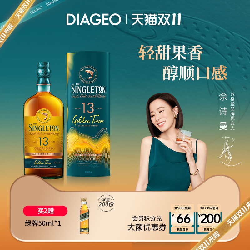 【佘诗曼同款】帝亚吉欧苏格登13年甜白桶单一麦芽威士忌700ml
