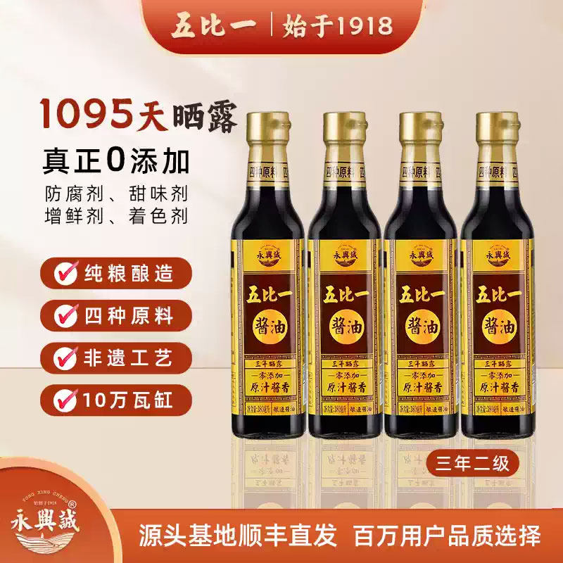 先市酱油三年熟成310ml传统手工自然发酵古法酿造酱油老抽官方